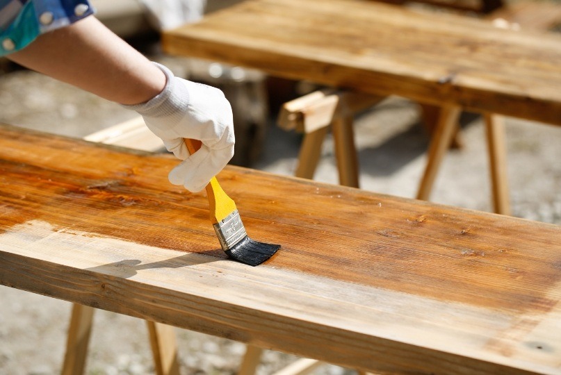 Przed nałożeniem lakierobejcę należy dokładnie wymieszać, aby uzyskać jednolity kolor. Zanim zaczniesz właściwą pracę zrób mały test: na niewidocznej części sprawdź uzyskiwany w praktyce kolor i efekt. Jest OK? To do dzieła! Maluj zgodnie z układem słojów na drewnie, długimi pociągnięciami pędzla, nakładając cienką warstwę. Nadmiar lakierobejcy zbierz, aby uniknąć zacieków. Jeśli się do tego przyłożysz, wyjdzie naprawdę świetnie – z kolei malowanie „byle jak” może łatwo zepsuć efekt końcowy.