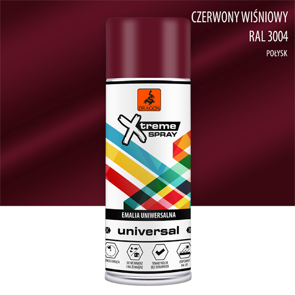 Zamów w przeciągu 02:21:32 a wysyłkę otrzymasz jutroEmalia uniwersalna w aerozolu czerwony wiśniowy RAL 3004 400ml Dragon