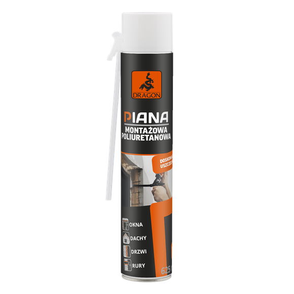 Jednokomponentowa pianka poliuretanowa DRAGON w wersji z aplikatorem wężykowym przeznaczona do profesjonalnego montażu, uszczelniania i wygłuszania.